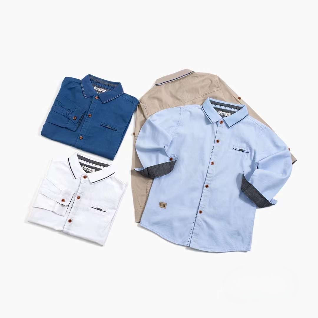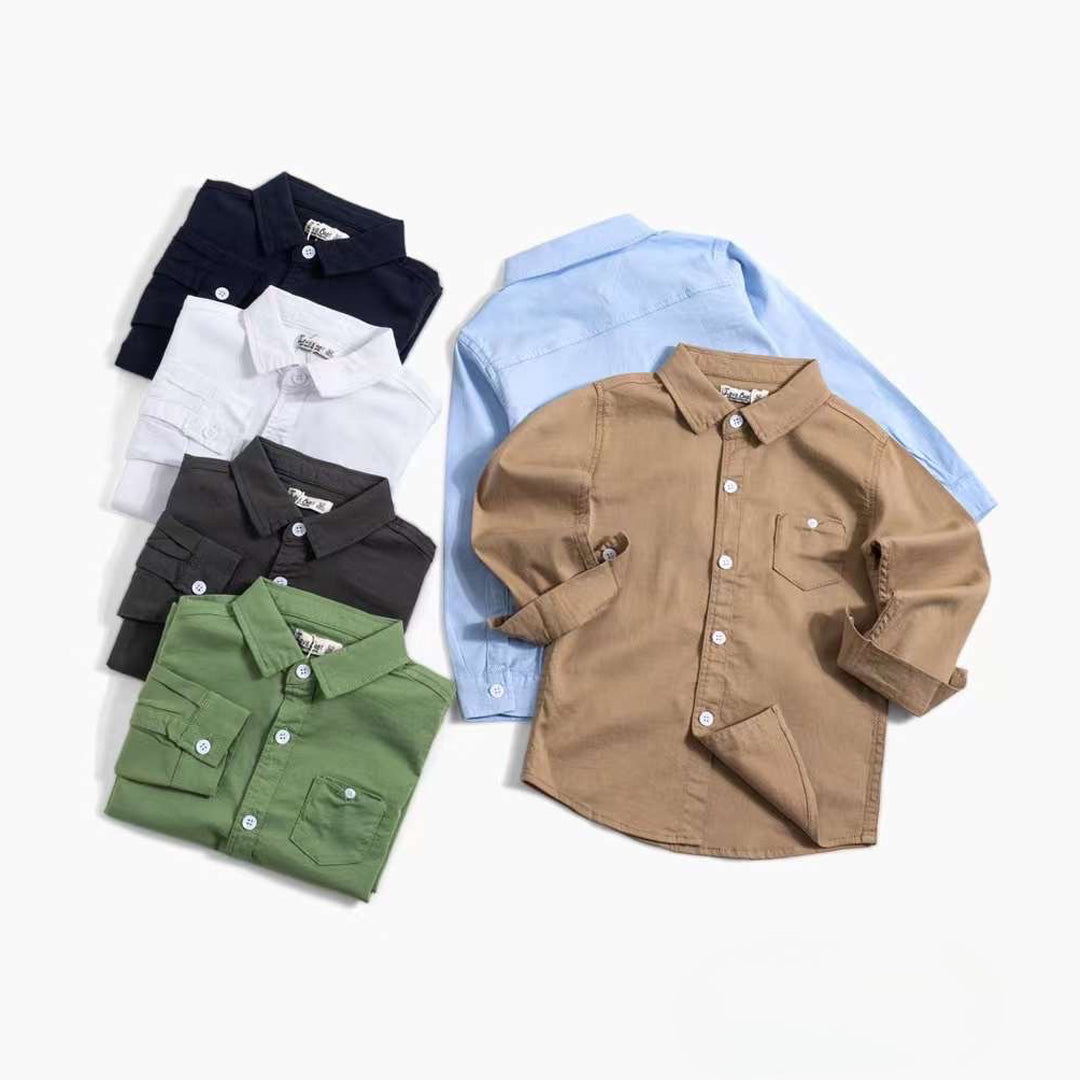 100% Cotton Boys Shirts Long Sleeve Detail Front Pocket Shirt for Kids ( Pack of 6 )