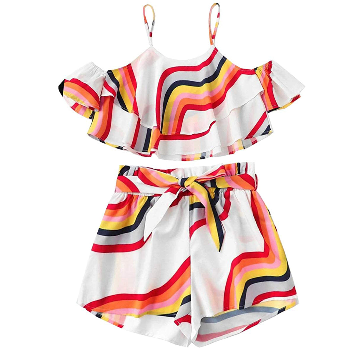 BabyGirl's Princess Stylish Lavender Floral & Multi lining Top Sleeveless And Shorts ( Combo Pack Of 2 ) for Kids. (For 6 Month to 6 Year)