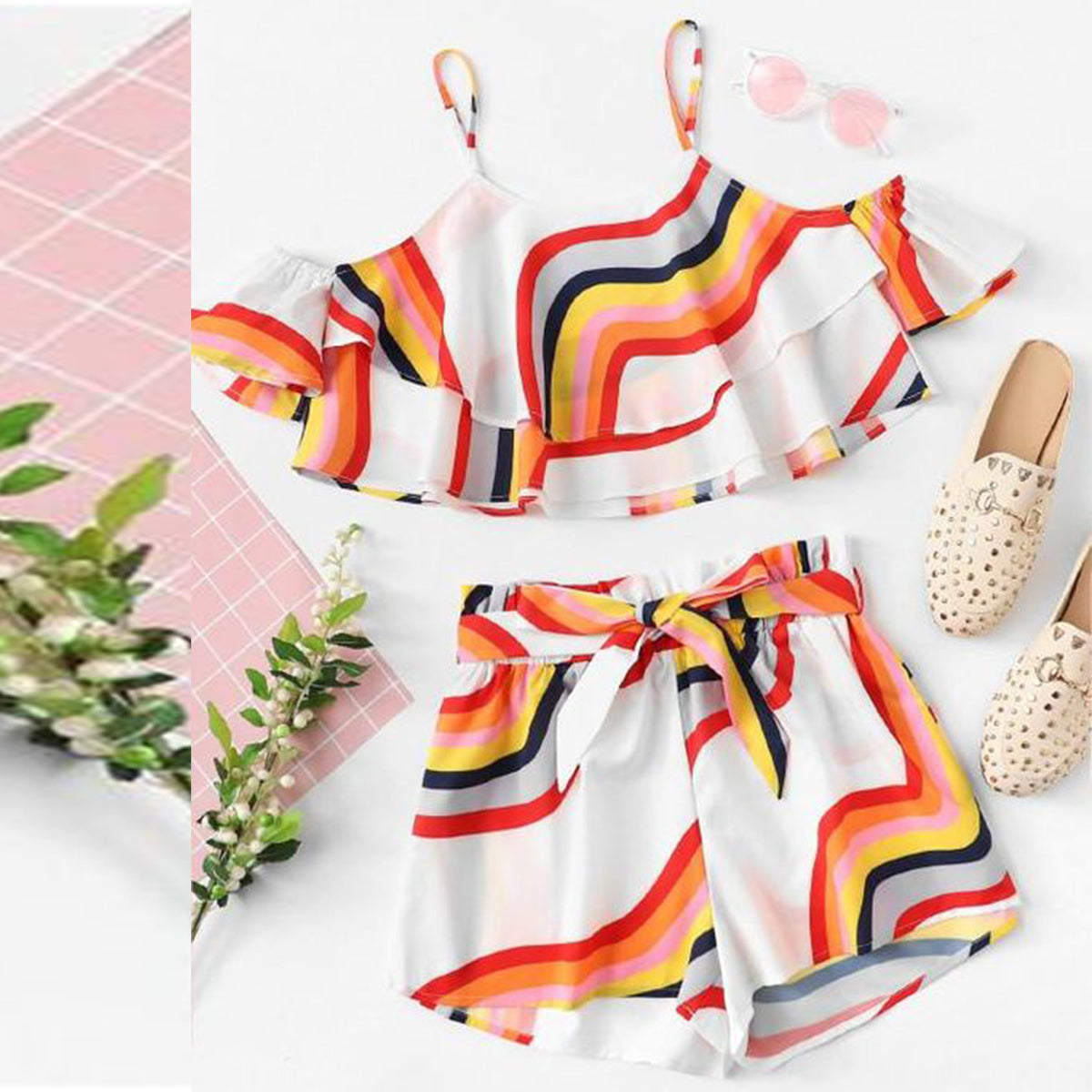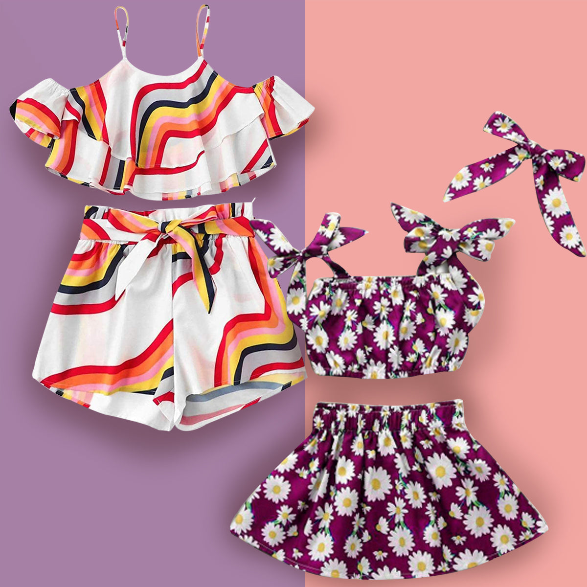 BabyGirl's Princess Stylish Lavender Floral & Multi lining Top Sleeveless And Shorts ( Combo Pack Of 2 ) for Kids.