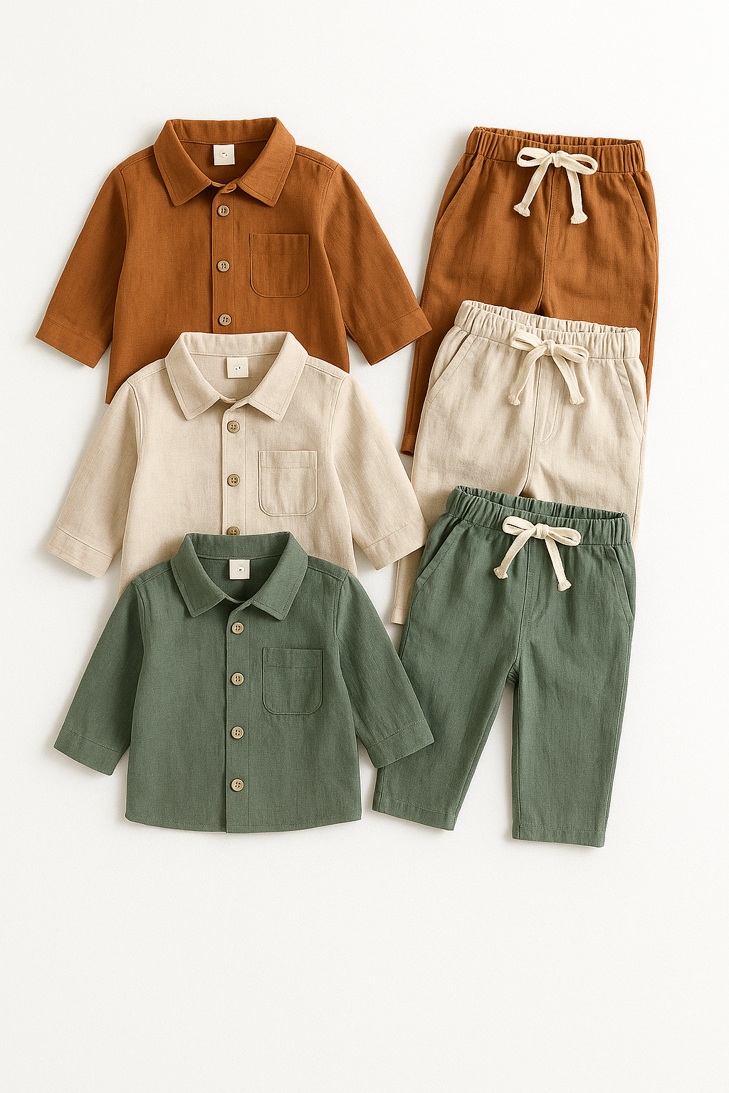 This Cotton Linen Baby Boys Shirt Pant Set comes in a pack of 4, providing parents with a convenient and stylish option for their little ones. Made with a blend of cotton and linen, these sets are soft, breathable, and comfortable for babies. Perfect for any occasion, these sets offer a timeless look with practicality.