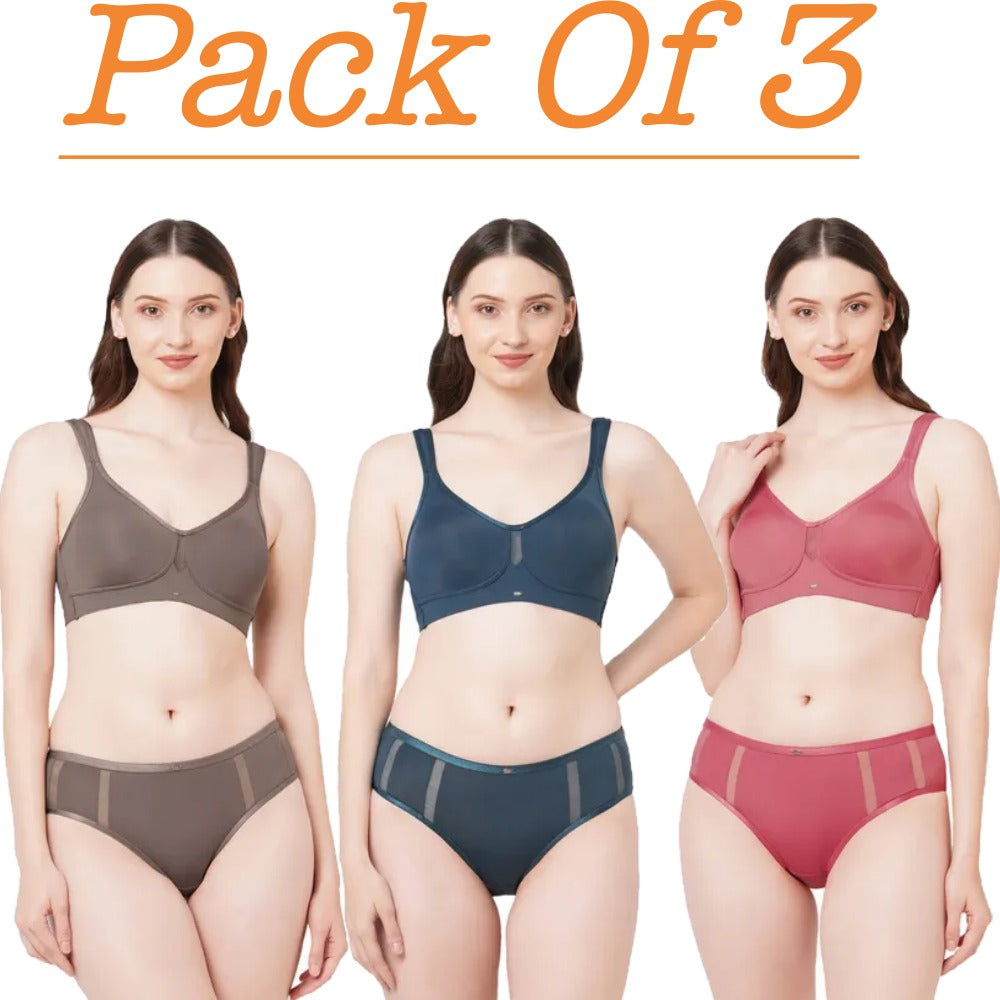FULL COVERAGE MINIMISER BRA WITH HIGH WAIST BRIEF ( PACK OF 3 )