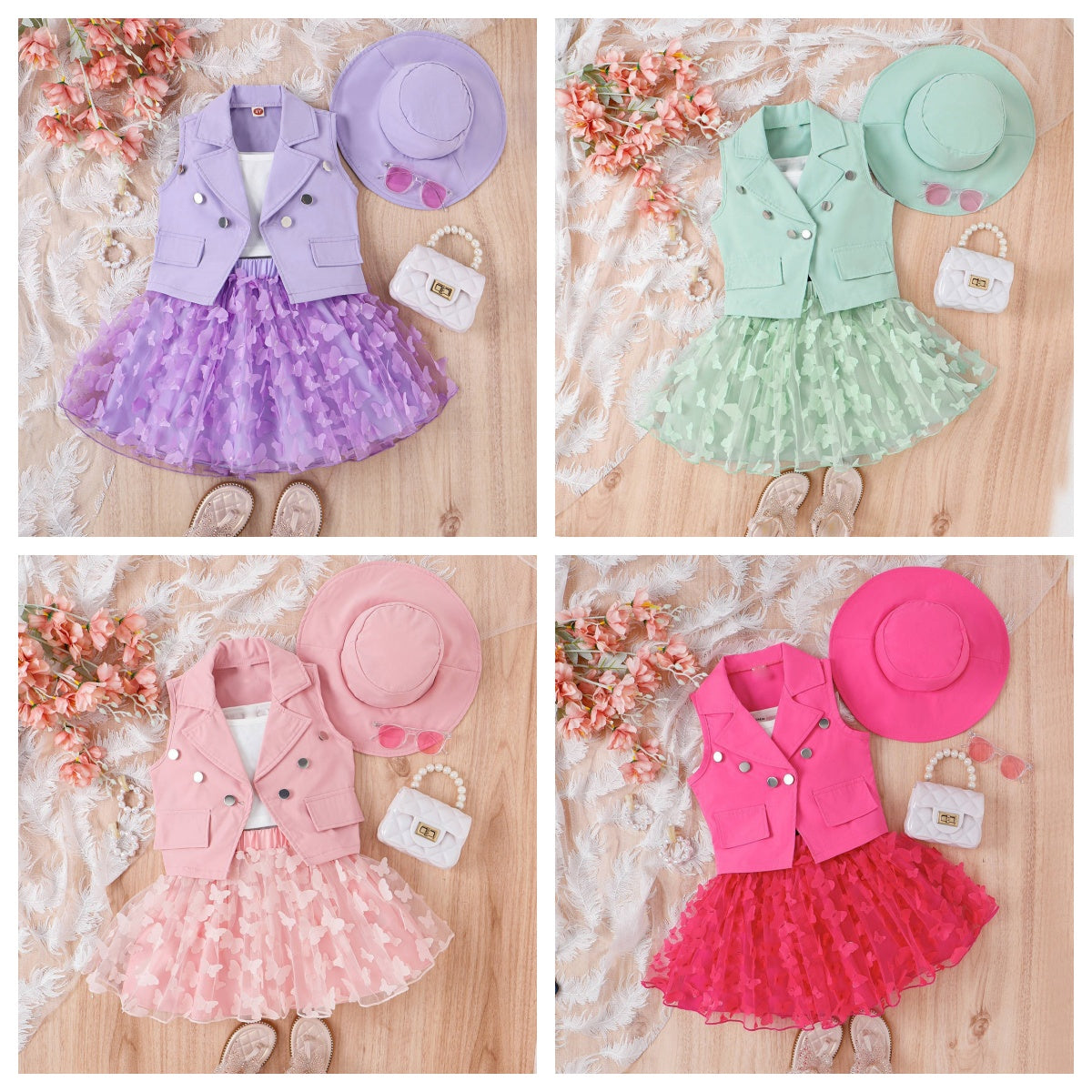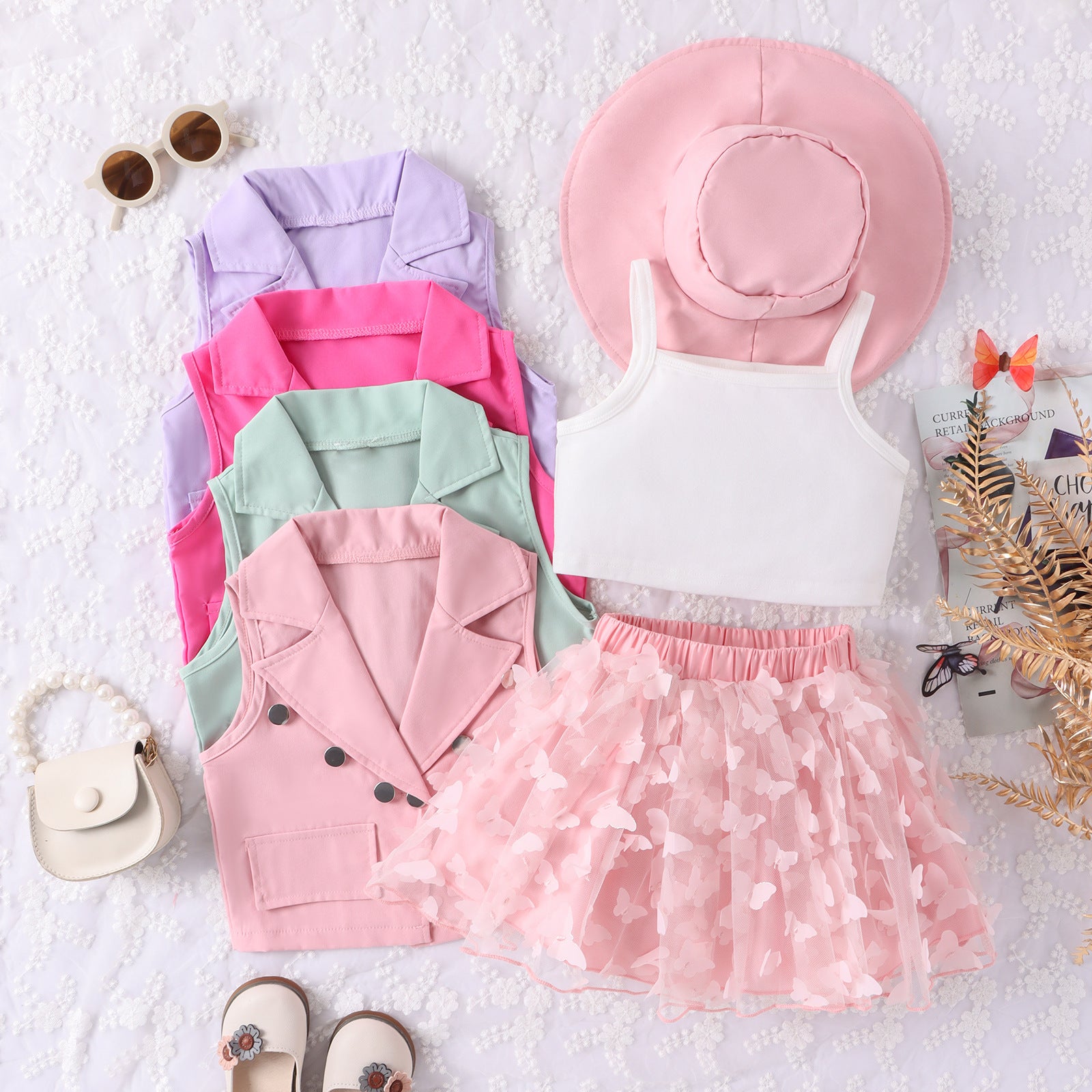 This set of four cotton strap vests, butterfly skirts, and sleeveless coats offers a stylish and versatile addition to any wardrobe. Made with high-quality cotton, these pieces provide comfortable and breathable wear. Perfect for any occasion, these items can be mixed and matched for a variety of stylish looks.