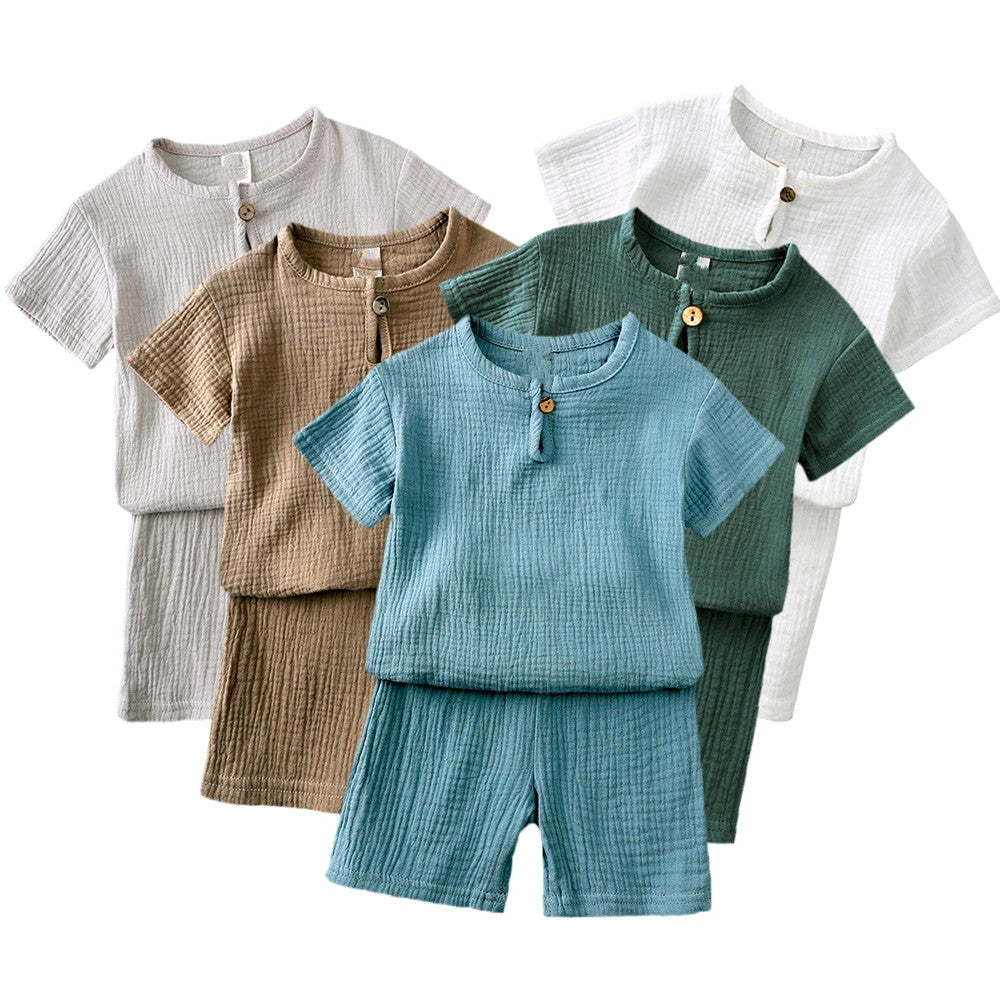 This pack of 5 Summer Baby Clothes is made from a comfortable blend of cotton and linen, perfect for keeping your little ones cool in warmer weather. The retro design adds a stylish touch, while the multiple pieces provide convenience for mixing and matching. Ideal for children, these suits are a must-have for any summer wardrobe.